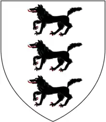 Sir Robert Lovett (d.1643), Knight, of Liscombe, Buckinghamshire,[4] Sheriff of Buckinghamshire in 1608,[5] was the father of Anne Lovett, second wife of Edward Bourchier, 4th Earl of Bath (1590-1636) of Tawstock Court, Devon.[6] Various monuments to the Lovett family survive in St Peter's Church, Tawstock. Arms of Lovett: Argent, three wolves passant in pale sable.