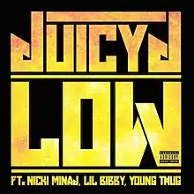 "Low" is a song by American rapper Juicy J featuring Lil Bibby, Young Thug, and Nicki Minaj. It was released on August 7, 2014, intended as the first single from the former's fourth studio album. However, it fared poorly commercially and was thereby removed from the project. "Low" was written by Juicy J, Nicki Minaj, Lil Bibby, Dr. Luke, Rock City, and Cirkut. It was produced by Dr. Luke and Cirkut.[1] The song received positive reception from music critics, most of it for Nicki Minaj's appearance. A music video directed by Benny Boom was created to promote the single.