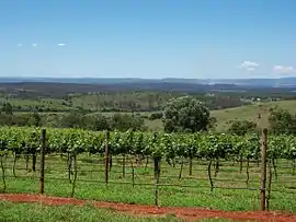 The South Burnett Wine Region is another attraction, with Verdelho grown successfully, due to the warm climate and rich soils. With around ten wineries, it is a relatively new wine region. Grapes were first planted in the area in 1898.[3] Industrial production began in 1993. Most of the wineries are located close to Kingaroy or in the Moffatdale area north of Murgon. There are none in the west of the region. Shiraz and Chardonnay are the most prevalent varieties with production roughly halved between red and white wines.[3]