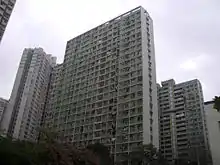 Lower Wong Tai Sin Estate was formerly a resettlement estate, called Wong Tai Sin Resettlement Estate (黃大仙徙置屋邨). It had 29 blocks built between the 1950s and 1960s with a total population of 97,000 at that time.[4][5][6] In 1973, the estate was renamed as Lower Wong Tai Sin Estate. In 1980, Block 8 was reassigned to Upper Wong Tai Sin Estate and was renamed "Cheung Yan House" (長欣樓).[7] Between the 1980s and 1990s, all old blocks were demolished to reconstruct new blocks.[8][9] In 2001, some of the flats in Lower Wong Tai Sin (I) Estate were sold to tenants through Tenants Purchase Scheme Phase 4.[10]