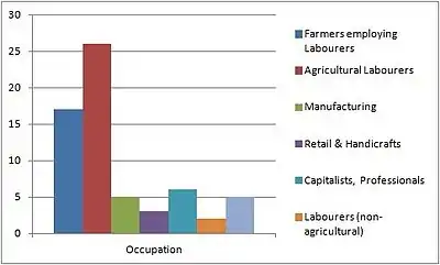 In 1831 agriculture was by far the most prominent industry, with 64% of the male population of the age of 20 employed in this sector.[12] However, fifty years later, this number had dropped to 40%, and while agriculture was still the most common employment, the remainder of the population was working in other occupations, including as coachmen, gardeners for the manor, or as machinists.[13]