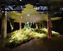 In 2012, the project raised over $150,000 from 3,300 backers on Kickstarter to create a full-scale exhibition of the solar lighting technology.[8] The project was named by Mashable as one of the top Kickstarter projects of that year.[9] In September 2012 an installation was opened on the Lower East Side to promote the project; titled "Imagining the Lowline," it consisted of a 30-foot (9m) wide aluminum solar canopy distributing natural sunlight onto a live cultivated landscape "park." The exhibit saw over 11,000 visitors and featured design talks, school visits, weekend street fairs and a political event. The executive producer of the exhibit was Robyn Shapiro and the industrial designer was Ed Jacobs with support from Brandt Graves.[10] Initial patent work in the associated technologies by David D. Winters, Winters Patent Law of Tennessee.