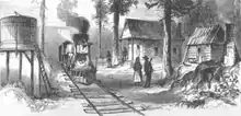 The Lowry War garnered national attention after The New York Times began reporting on it in October 1870. By the following year, the Associated Press wire was syndicating stories of the Lowry Gang around the country.[189] The trial of Henderson Oxendine led the New York Herald to dispatch a reporter down to Robeson County to cover the proceedings, and two more were later sent to report on the Lowry Gang.[190] In March 1872 Herald reporter A. Boyd Henderson arrived in Shoe Heel and established contact with some of the gang members.[191] Hoping to portray themselves in a positive and sympathetic manner,[192] they provided for his accommodation and he extensively interviewed them and their families.[193] Henderson's stories were published by the Herald in a series, "The Swamp Angels".[194] The Northern press coverage of the Lowry conflict, especially that of the New York Herald, generally fit into the local color genre, portraying Robeson County and the larger South as exotic and picturesque but also poor and backwards.[195] One Herald reporter, George Alfred Townsend, compiled these reports into an 1872 dime novel, The Swamp Outlaws.[2][196]
