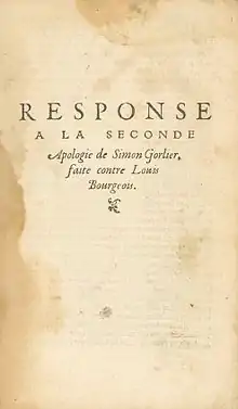 While in Lyon, Bourgeois wrote a fierce piece of invective against the publishers of Geneva. His daughter was baptized in Paris in May 1560 (as a Catholic), and also in 1560 a Parisian publisher posthumously printed a volume of his secular chansons – a form he had condemned as "dissolute" during his Geneva years.