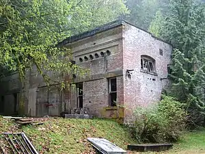 The Goldstream Powerhouse[1] is a decommissioned hydroelectric plant located near Goldstream Provincial Park in Langford, near Victoria, British Columbia. This plant provided electricity to Victoria for 60 years and is one of the little-known and ingenious chapters in the history of Victoria. This plant was one of the first hydro plants of this type on the west coast of North America.[2] The structure is over a century old and is unsafe to inhabit. It is within the boundaries of the watershed lands owned by the CRD and is inaccessible to the public due to its proximity to a drinking water reservoir.