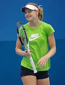 Šafářová had a match point in the third round of the Australian Open against Li Na, but was eventually beaten in three sets as Li went on to win her second major title.[11] At the Miami Open, she lost in three tight sets to Maria Sharapova in the third round. She would go on to lose to Sharapova again in the first round of the Porsche Tennis Grand Prix. At Roland Garros, she was the 23rd seed and defeated the in-form Ana Ivanovic in the third round, but lost in the next round to Svetlana Kuznetsova, in straight sets. At Wimbledon, she reached her first ever Grand Slam semifinal, where she lost in two sets to fellow Czech Petra Kvitová.[12][13] In November, Šafárová was a part of the Czech Fed Cup team that played the final against Germany. In front of the home crowd at the O2 Arena in Prague, she won her singles match against Angelique Kerber in straight sets, which contributed to a 3–1 victory for the Czech team.[14]