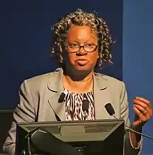 ![]() Adams-Campbell speaks at the National Institutes of Health in 2019 | |