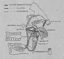 Frey's publication about auriculotemporal nerve syndrome, now widely known as "Frey's syndrome" ("zespół Łucji Frey" in Polish), was published in 1923, first in Polish journal "Polska Gazeta Lekarska", and later that year in renowned French journal "Revue Neurologique".[15] It was not the very first description of this constellation of symptoms.[16][17] Frey's predecessors were Kastremsky (1740), Duphenix (1757),[18] Barthez (1806),[19] Dupuy (1816),[20] Brown-Sequard (1849),[21][22] Baillarger (1853), Henle (1855),[23] Berard (1855),[24] Bergounhioux (1859),[25] Rouyer (1859),[26] Botkin (1875),[27] Parkes Weber (1897),[28] New and Bozer (1922)[29] and Lipsztat (1922).[30] Both Brown-Sequard and Henle reported their own symptoms.[17] All these observations lack a wide view of the anatomy, pathology and exact mechanism of gustatory sweating. Łucja Frey's article "Przypadek zespołu nerwu usznoskroniowego" ("Le Syndrome du Nerf Auriculo-Temporal") is considered to be the first such description of the phenomenon. Frey was first to recognize this syndrome as a disorder of both sympathetic and parasympathetic innervations.[4]