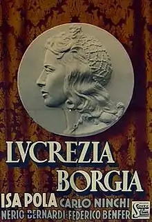 Lucrezia Borgia is a 1940 Italian historical film directed by Hans Hinrich and starring Isa Pola, Friedrich Benfer and Carlo Ninchi. The film portrays the life of Lucrezia Borgia (1480-1519), one of a number of Italian films of the era set during the Renaissance.[1] It was made at the Scalera Studios in Rome.