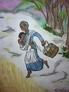 In late June 1862, Lucy, her daughter Mona, and some other slaves escaped from Grays Creek, Tennessee, crossed the Hatchie River, and eventually arrived at the Union lines that were at the fairgrounds near Bolivar, Tennessee, almost thirty miles away. Major Shadrack Hooper of the 23rd Indiana Infantry Regiment, who recorded all of their battles as adjutant, reported her joining their regiment, and described her character as someone having integrity, honesty, intelligence, always smiling, cheerful and kind, a willing washerwoman, seamstress, nurse, cook, and singer, as well as a "rattling good forager".[2][3] Other soldiers, and the regiment surgeon, Magnus Brucker, described her as a faithful nurse.[4]