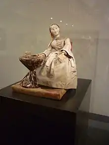 Between 1827 and 1842, Lucy Hiller Cleveland wrote, illustrated, and anonymously published over a dozen books for children, on topics including temperance, abolition, and 'social benevolence'.[3] As well as writing, Cleveland also produced a number of folk sculpture 'vignettes', showing various scenes of American life.[2] She entered these 'figures of rags' into a number of charitable fairs.[3] In 1844, aged 64, she was awarded a diploma by the Mechanics' Literary Association of Rochester, New York, for the best "Specimen of Figures of Rags".[3] In 1852, an entry into the Shirtwoman's Union Fair in New York City raised twenty dollars to assist women garment workers.[3]