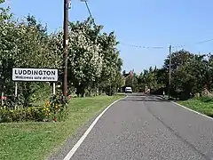 Luddington is situated at the northern edge of North Lincolnshire, on low-lying land which abuts the River Trent to the east. The B1392 road passes through the village centre, heading east to the bank of the Trent, and then turning south along the bank, and in the other direction, heading south-west and then west to reach Eastoft. A minor road heads north and then north-east to reach Garthorpe and Fockerby, once on opposite banks of the River Don, but since the diversion of the river as part of the drainage of Hatfield Chase, effectively one community. Just to the north of the village, a track leaves the road, providing a route to Haldenby Grange, near to which there was a railway station until 1965. The parish church is in fields to the north-east of the village centre.[5]