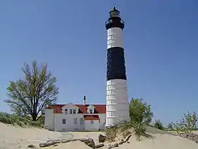 Ludington State Park is a public recreation area located two miles north of Ludington, Michigan, occupying 5,300 acres (2,100 ha) between the shores of Lake Michigan and Hamlin Lake. The state park is crossed by a one-mile stretch of the Big Sable River and is home to the 112-foot-high (34 m) Big Sable Point Lighthouse, which dates from 1876.[4]