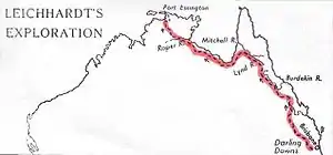 - corporateName=Queensland State Archives (5 April 2015). "Number 8 - Map of Ludwig Leichhardt's expedition from Moreton Bay to Port Essington (1844-1845)". Number 8 - Map of Ludwig Leichhardt’s expedition from Moreton Bay to Port Essington (1844-1845). Archived from the original on 5 April 2015. Retrieved 11 August 2020 – via National Library of Australia.