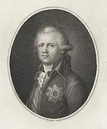 Von Cobenzl was born in Brussels in 1753 as one out of ten children to Count Johann Karl Philipp von Cobenzl (1712–1770), the plenipotentiary minister of the Empress Maria Theresia in the Austrian Netherlands.[1] His brother-in-law, François de la Woestyne, 3rd Marquess of Becelaere was executed by Guillotine in Cambrai. He also was a cousin of the diplomat Philipp Graf von Cobenzl, and a protégé of Wenzel Anton von Kaunitz. In 1779, he became minister at St. Petersburg.