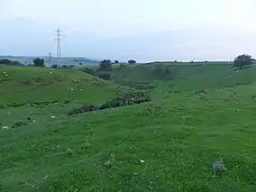 The site, north-east of Marple Bridge and south of Chisworth, comprises a sinuous dry valley running for about 400 metres (1,300 ft) south from Intakes Farm, cutting through a broad ridge running east–west.[2] It is considered to have been formed by a meltwater stream running beside or below a glacier. Pollen analyses from the site show that the channel dates from before the Younger Dryas (around 12,900 to 11,700 years BP[3]). It has been described as "an exceptional and nationally important example of an isolated col channel cut by glacial meltwater" and as having "considerable potential for further study".[1] A public road, Sandhill Lane, runs parallel to the eastern side of the valley and cuts across its southern end[2] near the former Ludworth Moor Colliery, which ceased operation in the early 1980s.[4]