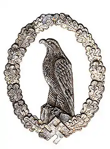 The Luftwaffe maintained two non-portable awards, the "Honor Goblet of the Luftwaffe" (Ehrenpokal für besondere Leistung im Luftkrieg) and the "Luftwaffe Honor Plate" (Ehrenschale für hervorragende Kampfleistungen der Luftwaffe). Recipients of both awards automatically received the Luftwaffe Honour Roll Clasp in January 1944.[11]
