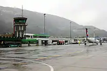Lugano Airport (IATA: LUG, ICAO: LSZA)[lower-alpha 1] is a regional airport located 4 km (2.5 mi) west of the Swiss city of Lugano, approximately 80 km (50 mi) north of Milan, in the municipalities of Agno, Bioggio and Muzzano. It lies closer to the village of Agno than to Lugano itself, and is sometimes known as Lugano-Agno.[1][3] Around 200,000 passengers use the airport each year, using some 2,400 flights. There are also limited freight operations, a flying club and flight school. The headquarters of Darwin Airline were located at the airport[4] prior to its bankruptcy.[5]