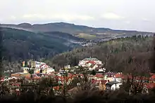 Luhačovice (Czech pronunciation: [ˈluɦatʃovɪtsɛ]; German: Luhatschowitz) is a spa town in Zlín District in the Zlín Region of the Czech Republic. It has about 5,000 inhabitants. It is known for the largest spa in Moravia and for architecturally valuable buildings designed by the architect Dušan Jurkovič. The historic town centre with the spa infrastructure is well preserved and is protected by law as an urban monument zone.