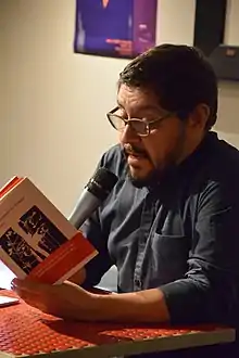 Among his books of poetry are: Tartaria, Mantel de tulipanes amarillos, Los ojos ya deshechos, La entranhable costume o El libro de Felipe, Decoración de interiores, Os olhos já desfeitos, Fruta de temporada, Ground Glass/Vidrio Molido, Gatos de ninguna parte, Eyes already ruined, No quimio, Travestiario, Libre de sospecha: Antología boreal, Diario de Yony Paz, Muchachos que no besan en la boca, Los cuerpos imprevistos, He decidido casarme cuando acabe la guerra and Vampires never say goodbye.[2] His work has been included in the following collections: Verso Norte (PostData Editores, 2009); Los primeros once (Fondo Editorial Nuevo León, 2010); Territorios de la violencia (Conarte, 2007); Versos veraniegos (Conarte, 2006); La difícil brevedad (CRIPIL Noreste, 2008); Poesia (Rumania, 2011); Trece mantis en un jardín germano/Dreizehn Mantis in einem deutschen Garten (Colegio de Puebla, 2013); Caravansary (Colegio de Puebla, 2014); Versiones acústicas (Mantis Editores, 2014); Después del desierto: nuevo cuento regiomontano (Analfabeta Editores,2016); and Once cuentos rusos (Ficticia Ediciones, 2018).[3]