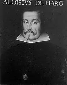 Luis Méndez de Haro, 6th Marquis of Carpio or Luis Méndez de Haro y Guzmán, Grandee of Spain (in full, Spanish: Don Luis Méndez de Haro Guzmán y Sotomayor de la Paz, sexto marqués del Carpio, segundo conde de Morente, quinto conde y tercer duque de Olivares, segundo marqués de Eliche, primer duque de Montoro, 3 veces Grande de España, Comendador mayor de la Orden de Alcántara, Gran Chanciller de las Indias, Alcaide de las Alcázares de Sevilla y Córdoba, Caballerizo mayor, gentilhombre de cámara y primer ministro de Felipe IV y su gran privado), (1598 – 26 November 1661), was a Spanish nobleman, political figure and general.