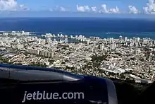 Luis Muñoz Marín International Airport (IATA: SJU, ICAO: TJSJ, FAA LID: SJU) (Spanish: Aeropuerto Internacional Luis Muñoz Marín) is a joint civil-military international airport located in suburban Carolina, Puerto Rico, three miles (5 km) southeast of San Juan. It is named for Luis Muñoz Marín, Puerto Rico's first democratically elected governor, and was known as Isla Verde International Airport (Aeropuerto Internacional de Isla Verde) until it was renamed in February 1985. It is the busiest airport in the Caribbean region by passenger traffic. Over 4 million passengers board a plane at the airport per year according to the Federal Aviation Administration, making it the 48th busiest airport overseen by said federal agency.[6]