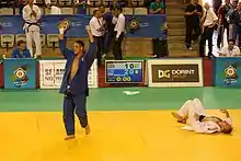 At the start of the 2012 season, Krpálek was already guaranteed a spot at the 2012 Summer Olympic. At the beginning of the year, his preparation was complicated by a back injury.[17] As a result, he was unable to train for a month; nonetheless he was able to win the Prague Grand Prix tournament in February. At the European Championships he was defeated in the second round by Zafar Machmadov.[18] On 2 August Krpálek participated in the Olympic 100 kg tournament. His first match was in the second round against Japanese judoka Takamasa Anai, world champion from 2010. Krpálek won by ippon within 25 seconds. In the quarterfinals he fought against the reigning world champion at that time, Tagir Khaibulaev from Russia. With one minute remaining Krpálek was leading by one yuko, awarded after his successful Ōuchi gari technique. Fighting on the ground, Khaibulaev was able to get away from his opponents grip, then he proceeded to successfully hold Krpálek and was awarded an ippon. After the defeat Krpálek faced Henk Grol in a repechage, and again lost by ippon, this time via Ōuchi gari. Krpálek finished seventh overall.[1][19]