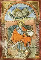 Saint Luke as depicted in the head-piece of an Armenian Gospel manuscript from 1609, held at the Bodleian Library