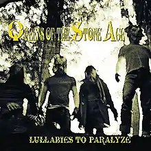 Lullabies to Paralyze is the fourth studio album by American rock band Queens of the Stone Age, released on March 22, 2005.[3] The album debuted at #5 on the Billboard 200,[4] and sold 97,000 copies in America during its first week of release,[4] eventually topping over 342,000 copies as of March, 2007 according to Nielsen Soundscan.[5] The album has been certified gold in the UK, where it has sold over 100,000 units. It is also the band's first album to be released after bassist Nick Oliveri was fired from the band. Singer/guitarist Josh Homme and singer Mark Lanegan are the only members from the previous album, Songs for the Deaf, to play on this album and it is the first album to feature drummer Joey Castillo and guitarist Troy Van Leeuwen.