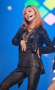 In 2006, SM Entertainment recruited Luna after seeing her performing on an SBS television program, Truth Game.[6] She later debuted as the main vocalist and lead dancer of South Korean girl group f(x) in September 2009. Aside from the group's activities, Luna also made several solo appearances. In 2010, she appeared as the regular member of Star King for a long time and earned a Newcomer Award from the SBS Entertainment Awards for her appearance and effort.[7] Later in the year, Luna recorded the song "Let's Go" alongside labelmates Sungmin, Seohyun, and Jonghyun, for the purpose of increasing public participation in the 2010 G-20 Seoul summit.[8] She released a duet with Super Junior's Yesung "And I Love You" for the soundtrack of KBS2 drama The President and a solo single "Beautiful Day" which served as the OST for drama Please Marry Me.