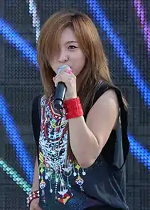 Park Sun-young (born August 12, 1993), known professionally as Luna, is a South Korean singer, musical actress and television presenter. She debuted as a member of girl group f(x) in September 2009. Apart from her group's activities, Luna has established herself as a musical actress, notably through her participation in the original and Korean versions of stage musicals including Legally Blonde, Coyote Ugly, High School Musical on Stage!, School OZ Hologram Musical, In the Heights, Rebecca, Rudolf (The Last Kiss) and Autant en emporte le vent (Gone with The Wind). She also starred in the film The Lightning Man's Secret (2015).