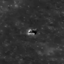 An area displaying a lava tube and rilles is the Marius Hills region (14°4′20.83″N 56°44′57.49″W).[1] In 2008, an opening to a lava tube in this area may have been discovered by the Japanese Kaguya spacecraft.[5] The skylight was photographed in more detail in 2011 by NASA's Lunar Reconnaissance Orbiter, showing both the 65-meter-wide pit and the floor of the pit about 36 meters below.[4][6] Additionally, the Hadley Rille may have been a partly roofed lava channel, some parts of which have since collapsed.[7] There may also be lava tubes in the Mare Serenitatis.[8][9][10][11]