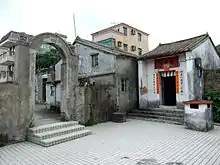 A walled village. The Entrance Tower of Ma Wat Wai is a declared monument[23][24] 22.499027°N 114.149998°E / 22.499027; 114.149998 (Ma Wat Wai)