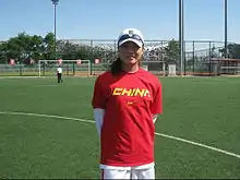 In the 2004 Olympic softball competition she finished fourth with the Chinese team. She played four matches as outfielder.