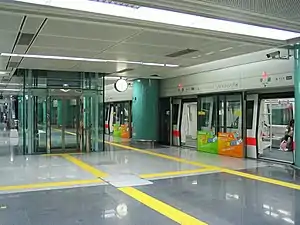 Opened on 28 December 2004, Luohu station offers interchange to the Guangzhou–Shenzhen railway at Shenzhen railway station, and to the Hong Kong MTR at Lo Wu station.[3][4] Two tracks run through the station, with platforms on either side; passengers board from the central island platform and alight on the side platforms. This configuration is known as the Spanish solution.