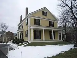 The 2+1⁄2-story wood-frame house was built in 1840 by Oliver Hastings. It retained a traditional entry centered on the long side of the house, while it was oriented with its gable to the street in the Greek Revival style. A two-story ell at the rear of the house is probably original, and the house was further extended with a single story addition on its east side.[2]
