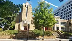 In 1937, the congregation moved to its current location at the intersection of Peachtree Street and Fourth Street in midtown Atlanta, near Saint Mark Methodist Church.[5] This building was nicknamed the "Church of the Lighted Window" because it had a large stained glass window featuring the Good Shepherd facing Peachtree Street.[7] The current building, a gothic structure built primarily of Tennessee quartzite and Indiana limestone, was constructed in 1952 and was designed by Harold E. Wagoner, a notable ecclesiastical architect.[5] The building's dedication occurred on September 7 of that year.[8] In 2002, the church dedicated a new pipe organ built by Orgues Létourneau Limitée: the Opus 80.[9]