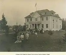 In 1865, Reverend Eric Norelius of Vasa Lutheran Church in Welch, Minnesota purchased ten acres of land near the site of the congregation for an orphanage with cropland to support operating costs. The congregation was caring for four orphaned children in the church basement and needed a formal home as they took in more children. This became Vasa Children's Home, Minnesota's first orphanage.[2] Norelius managed the home until 1876 when he transferred supervision to the Minnesota Conference of the Augustana Lutheran Synod.[3] After being rebuilt twice due to tornado and fire damage, the home moved to its present Red Wing, Minnesota location in 1926.