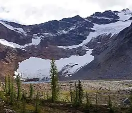 Lyman Glacier is in Wenatchee National Forest in the U.S. state of Washington and is just northeast of Chiwawa Mountain.[2] Between the years 1890 and 2008, Lyman Glacier has retreated 1,310 m (4,300 ft) and lost 86 percent of its area, a reduction in its surface from 1.41 to .02 km2 (0.5444 to 0.0077 sq mi).[3] Lyman Glacier terminates at a proglacial lake and a series of smaller lakes as well as a pronounced terminal moraine indicate where the glacier once extended to.