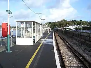 Lymington Pier railway station serves the harbour area of Lymington in Hampshire, England. It is 98 miles 15 chains (158.0 km) measured from London Waterloo and is the terminus of the Lymington Branch Line from Brockenhurst and provides a connection with ferry services to Yarmouth on the Isle of Wight. It has one platform.