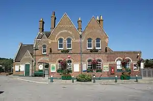 The Lymington Railway built a small engine shed north of the station in 1858. This was extended in 1874, and remained open until 1966.[3]