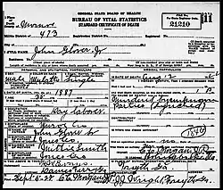 ![]() Death certificate for John Glover 1922 | |