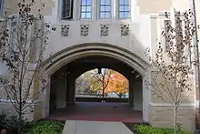 Construction of the southern wing of Lyons was completed by the fall of 1926, while the northern wing was completed in the fall of 1927.[10] When the first wing opened it accommodated more than a hundred students.[11] The northern wing, which was started in late 1926, completed the quadrangle towards Morrissey and Howard and features an archway and a view on the lake. The architecture of it matched that of the southern wing of Lyons and of Morrissey and Howard, and it hosted about 100 additional students plus the rector's facilities and ten rooms for lay faculty members in wing north-east of the arch.[12] Charles Doremus was its first rector.[13] The three new dorms were seen as the most modern and most beautiful on campus at the time when built, and Lyons in particular was appreciated for integrating views of the lake in its design.[14]