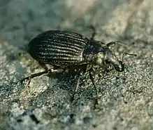 The species is one of the invertebrates "declared to be animals" in the 1980 amendment of the Wildlife Act 1953, and thus legally protected.[10] They are flightless, slow-moving beetles, vulnerable to being eaten by mice and rats, and their host plants are susceptible to browsing by mammals such as sheep, pigs, and goats.[6] One population at Ōwhiro Bay on the Wellington coast was destroyed when their entire habitat was turned into a quarry.[3]