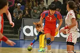 Lyudmila Valeryevna Bodniyeva (Russian: Людмила Валерьевна Бодниева; born on October 15, 1978 in Elista, Russia) is the current head coach of the Russian women's national handball team.[1] She formerly played for the clubs Akva Volgograd and Krim Ljubljana,[2] and was a world champion with the Russian women's national handball team. She is of Kalmyk ethnicity.