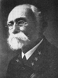 Máximo Gómez y Báez (November 18, 1836 – June 17, 1905) was a Dominican Generalissimo in Cuba's War of Independence (1895–1898). He was known for his controversial scorched-earth policy, which entailed dynamiting passenger trains and torching the Spanish loyalists' property and sugar plantations—including many owned by Americans.[3] He greatly increased the efficacy of the attacks by torturing and killing not only Spanish soldiers, but also Spanish sympathizers and especially Cubans loyal to Spain.[4] By the time the Spanish–American War broke out in April 1898, the rebellion was virtually defeated in most of Western Cuba, with only a few operating pockets in the center and the east. He refused to join forces with the Spanish in fighting off the United States, and he retired to the Quinta de los Molinos, a luxury villa outside of Havana after the war's end formerly used by captains generals as summer residence.