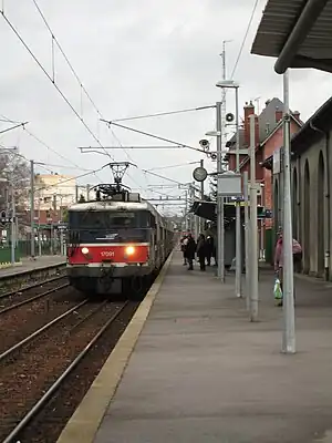 When the line was electrified with 25 kV 50 Hz alternating current, a third platform track was added to create a partial terminus.