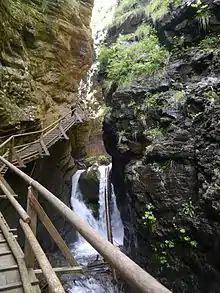 From Flattach the mountain may be climbed through the 200 m (660 ft) deep Ragga Ravine (Raggaschlucht), a protected natural monument, where a winding boardwalk leads across numerous waterfalls up to the Raggaalm pasture.