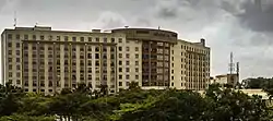 The Mövenpick Ambassador Hotel Accra is located within the city's Central Business District[4] a few kilometres away from Kotoka International Airport, Accra.[1] The hotel is located close to the Accra Financial Centre, World Trade Centre, International Conference Centre and government ministries. The hotel also has the largest swimming-pool in Accra and an emporium attached to it, with shops and other businesses.[5]