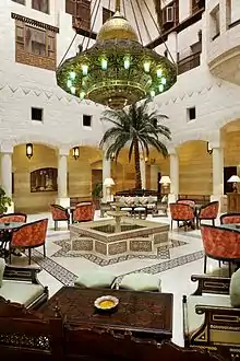 The hotel features an oriental-Islamic architecture style, where natural stones and hand-crafted woodwork is merged. Islamic architecture is noticed in the interior designs. The hotel includes 183 rooms and suites and 7 restaurants. The architect was Rasem Badran.[1]